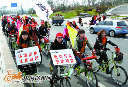 中國(guó)徐州網(wǎng)-彭城晚報(bào)訊 (記者 張傳寶) 昨日上午9點(diǎn)半,百余名文明閃客騎著自行車,匯聚到云龍山西門,上午10點(diǎn),閃客們臉上貼著文明閃客logo,舉著精心制作的環(huán)保標(biāo)語(yǔ),環(huán)湖騎行宣傳環(huán)保拉開(kāi)了帷幕。